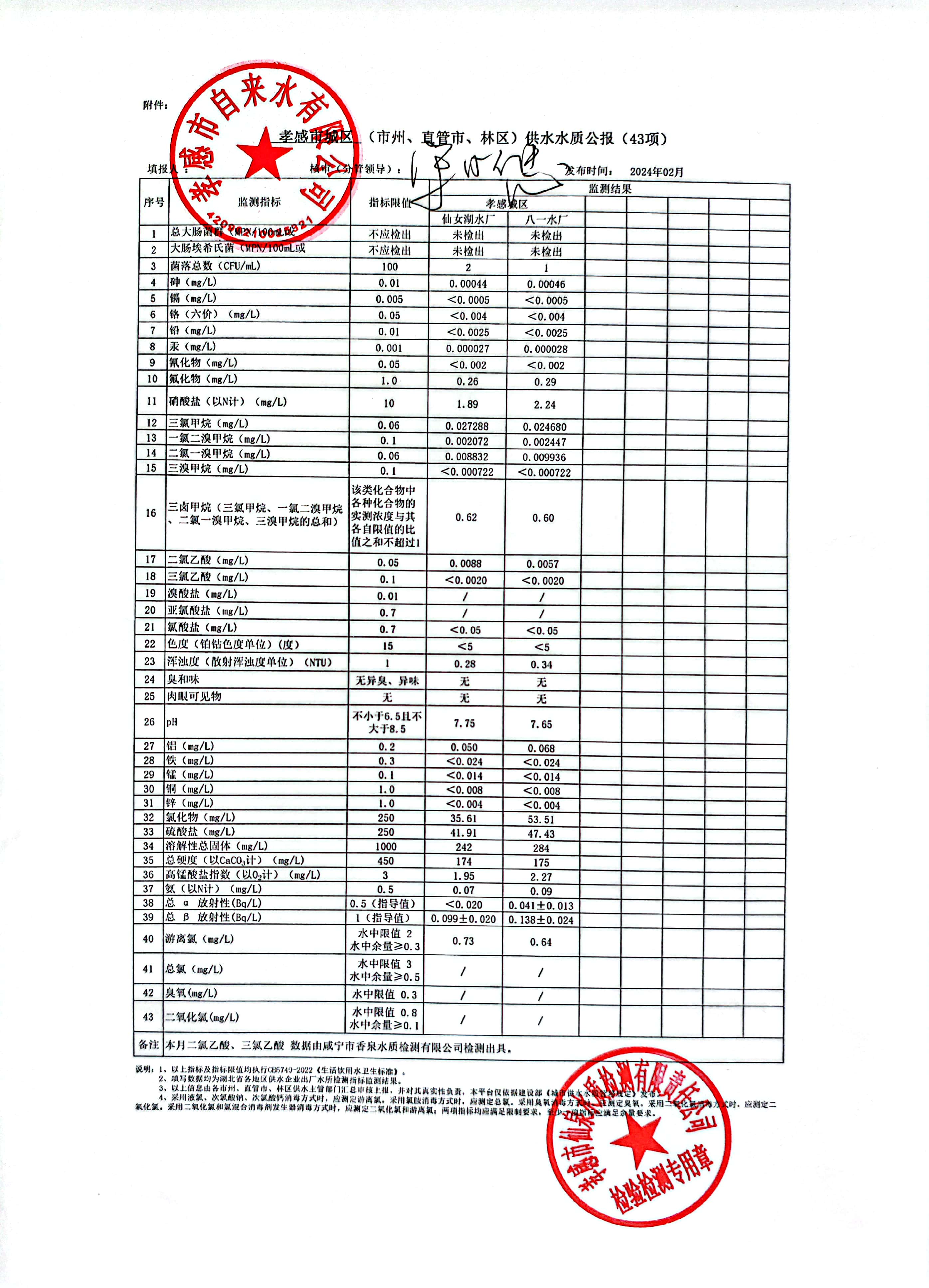 2024年2月水質(zhì)報(bào)告